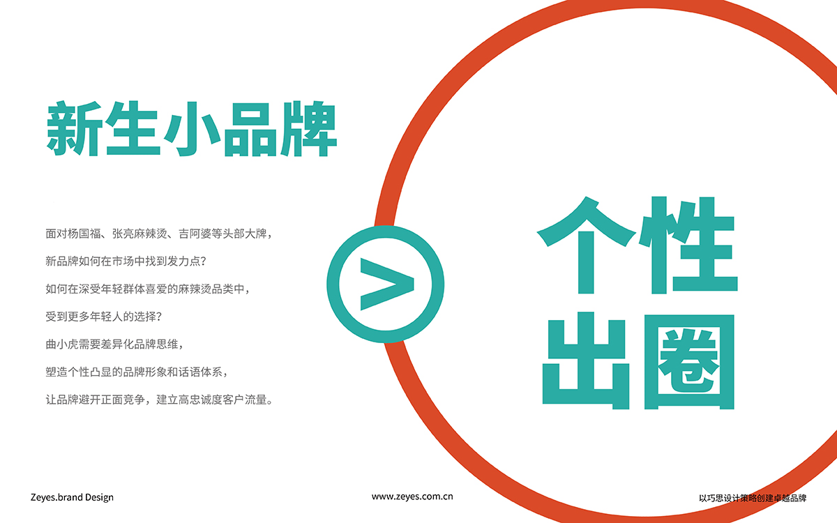 面對楊國福、張亮麻辣燙、吉阿婆等頭部大牌, 新品牌如何在市場中找到發(fā)力點(diǎn)? 如何在深受年輕群體喜愛的麻辣燙品類中, 受到更多年輕人的選擇? 曲小虎需要差異化品牌思維, 塑造個(gè)性凸顯的品牌形象和話語體系, 讓品牌避開正面競爭,建立高忠誠度客戶流量。